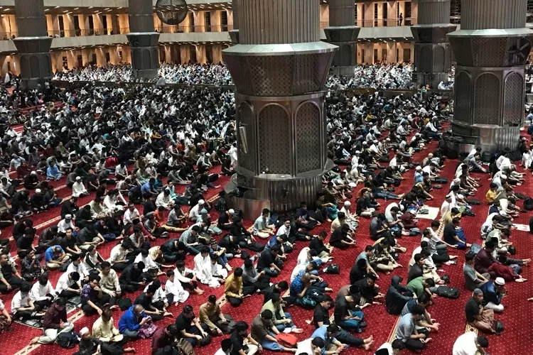 Ribuan jamaah memadati Masjid Istiqlal, Jakarta, untuk shalat tarawih perdana Ramadhan 1446 Hijriyah.